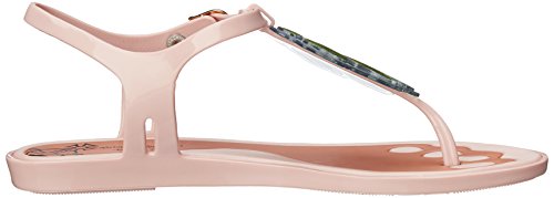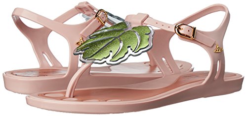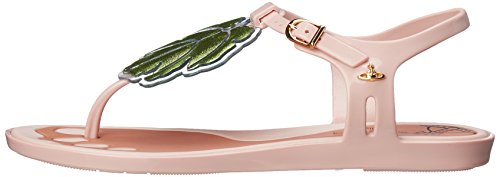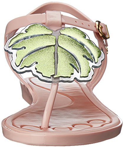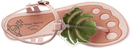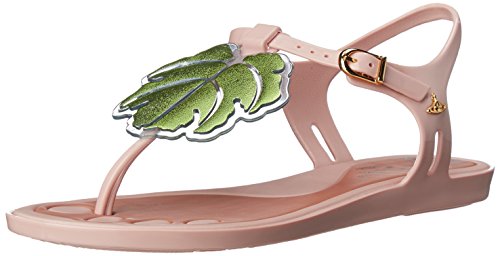 Flat thong sandal featuring adjustable buckle strap at ankle and gold-tone logo hardware at vamp