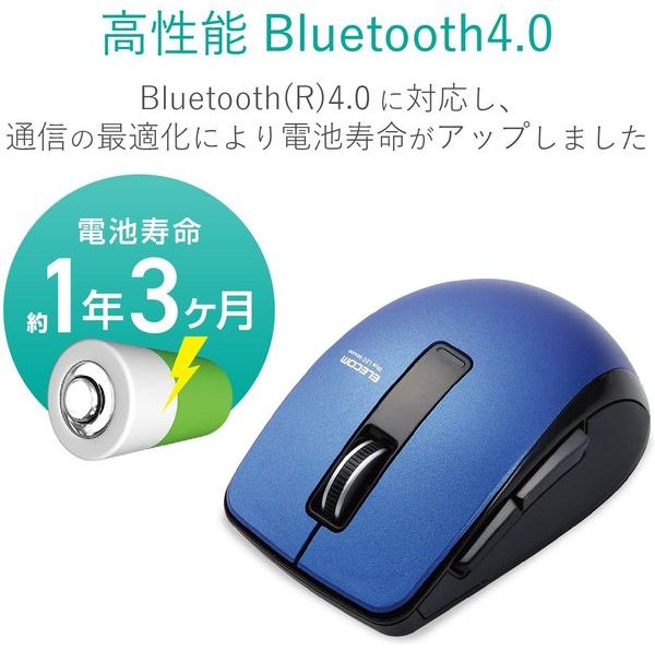 ●Webブラウザの閲覧に便利な戻る・進むボタンが付いた5ボタンタイプのBluetooth(R)4.0 BlueLEDワイヤレスマウス。