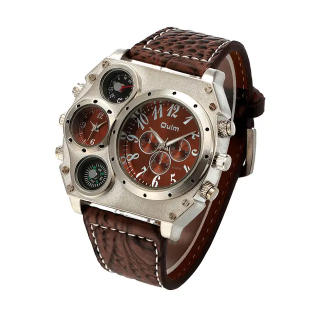 | [해외] Orologio에 uomo 남성 시계 2017 새로운 군사 듀얼 타임 석영 큰 다이얼 스포츠 가죽 Oulm 브랜드 명품 남성 시계 Relojes |