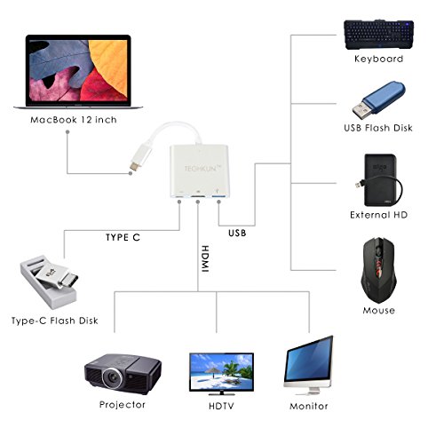 -. Title : USB C Adapter,TEC-HKUN USB-C Digital AV multiport Adapter,1 USB C recharging Port,1 HDMI Port and 1 USB 3.0 Port for Macbook 12" Version 2015 with type C charge Port