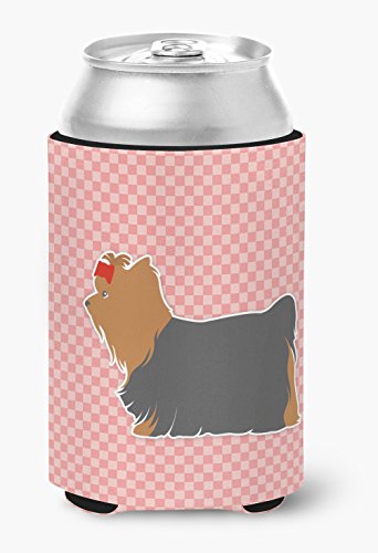 Caroline's Treasures Yorkshire Terrier Yorkie Checkerboard Pink Can or Bottle Hugger BB3634CC, Can Hugger, Multicolor