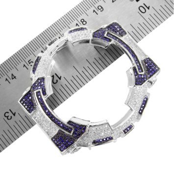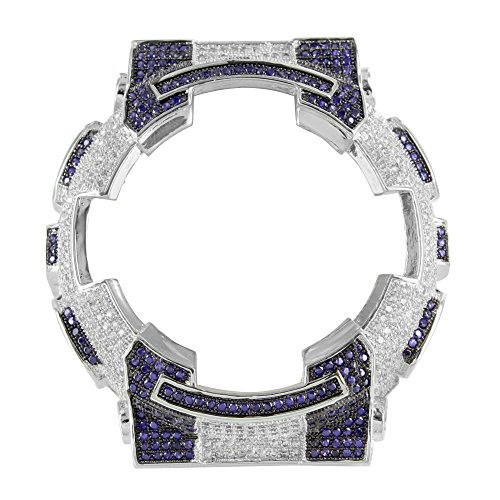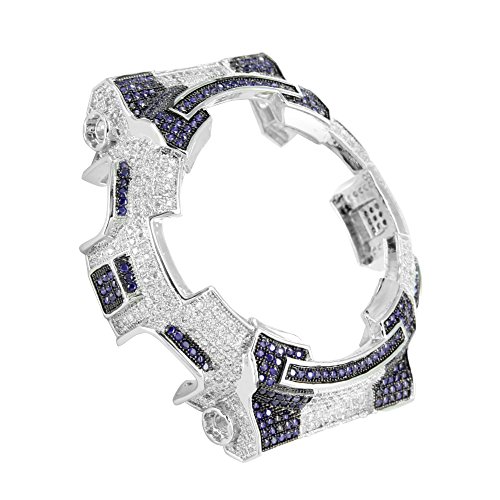 -. Title : DW6900 14k White Gold Finish Blue & White Lab Diamond Iced G Shock Watch Bezel