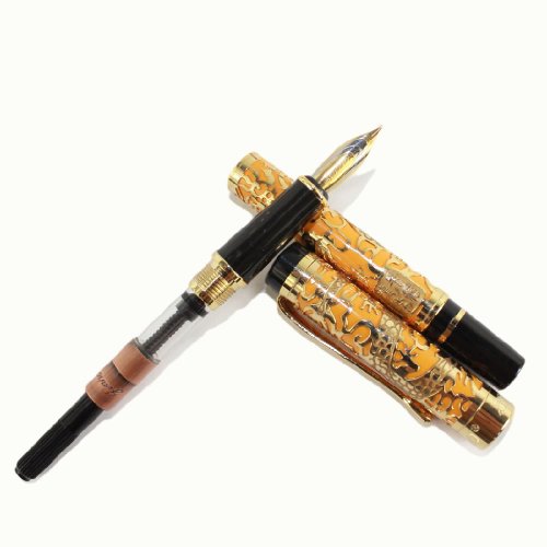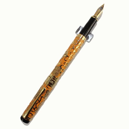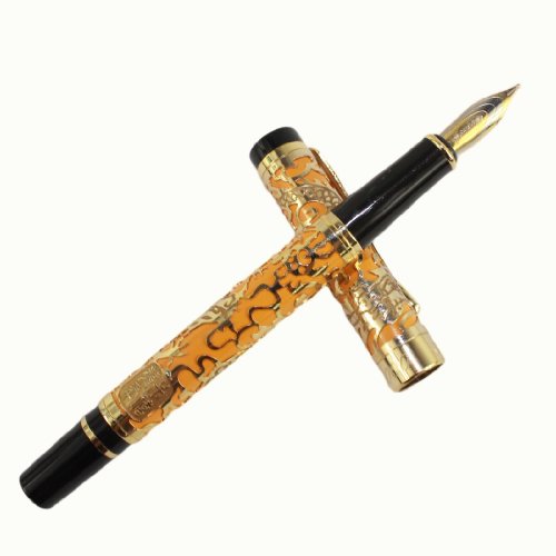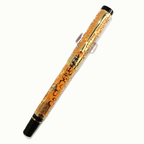 Beatiful Noblest Fountain Pen Jinhao 5000 Orange with Golden Dragon Carved