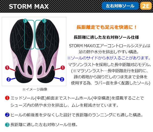 シュンソクストームマックスのエアーコントロールシステムは足の熱や水分を排出しやすい構造で長距離走でも快適です♪