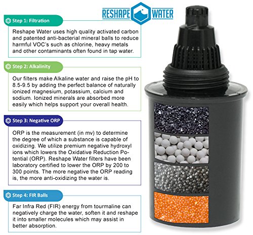 Reshape Water Alkaline Replacement Filters - (2 Pack) Laboratory Proven To Remove Or Reduce Fluoride, Lead, Heavy Metals - Softens water, raises pH up to 9.5 and creates negative ORP water