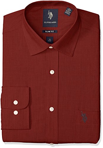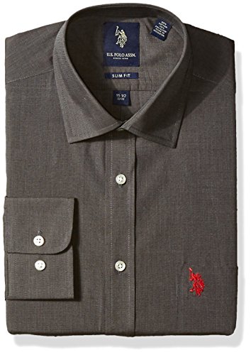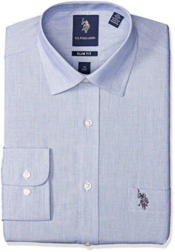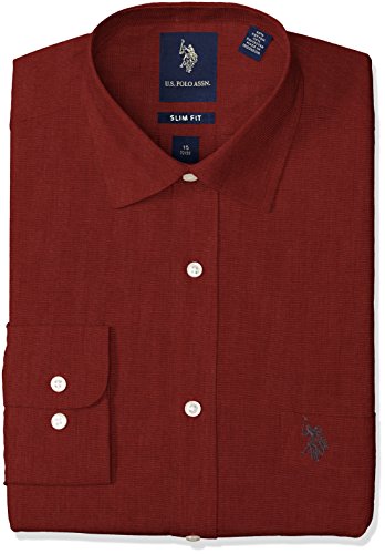 U.S. Polo Assn Men's End on End Slim Fit Semi Spread Collar Dress Shirt