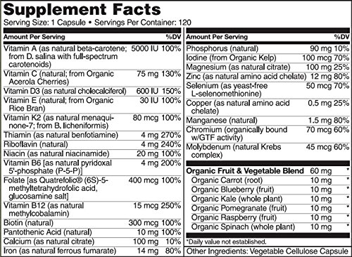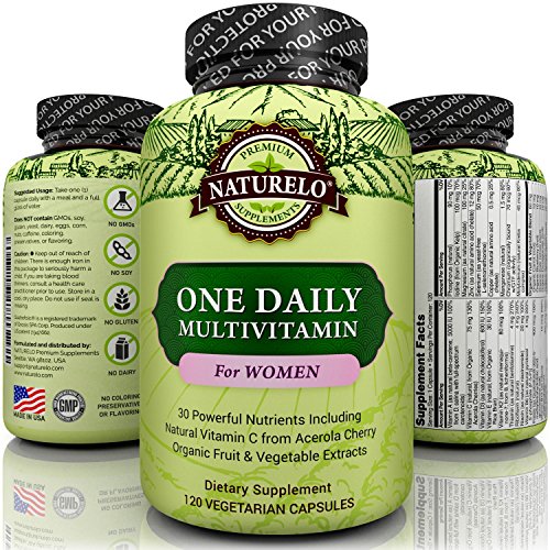 NATURELO One Daily Multivitamin for Women - Best for Hair, Skin & Nails - Natural Energy Support - Whole Food Supplement - Non-GMO - No Soy - Gluten Free - 120 Capsules | 4 Month Supply