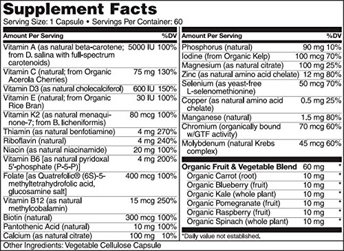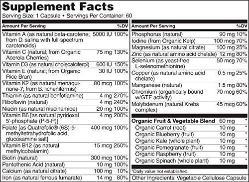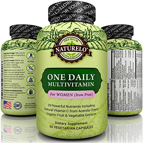 NATURELO One Daily Multivitamin for Women - IRON FREE – Natural Menopause Support - Best for Women Over 40 & 50 - Whole Food Supplement - Non-GMO - No Soy - 60 Capsules | 2 Month Supply