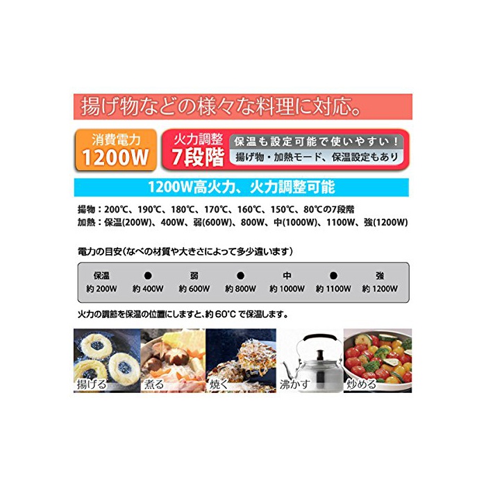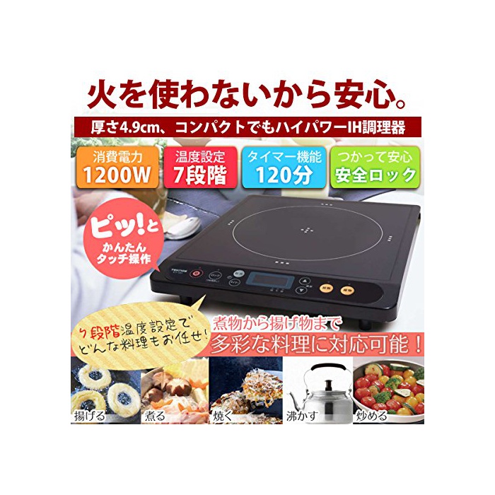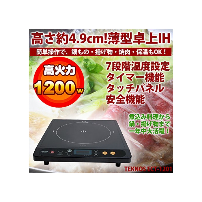 원본상품명: TEKNOS IH調理器 1200W クッキングヒ?タ? 超薄型タイプ ECT-1201 ブラック