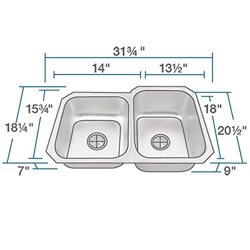 CONTEMPORARY STYLING -- Made in the USA, the rectangular bowls are independently sized and front-aligned allowing for a fashionable off-center faucet installation
