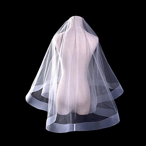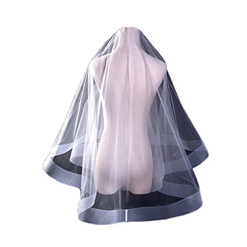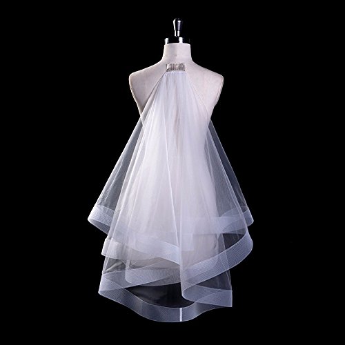 Ruolai Horsehair Trim Fingertip Two-Tier Wedding Veil Elegant Bridal Veil-RLV19001