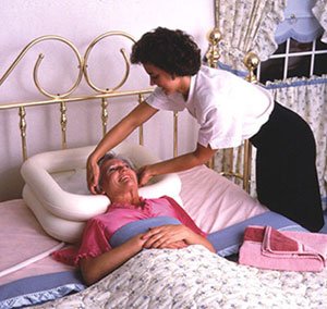 EZ-SHAMPOO® is an inflatable basin that allows confined clients to enjoy a refreshing in-bed shampoo. Comfortable and convenient.