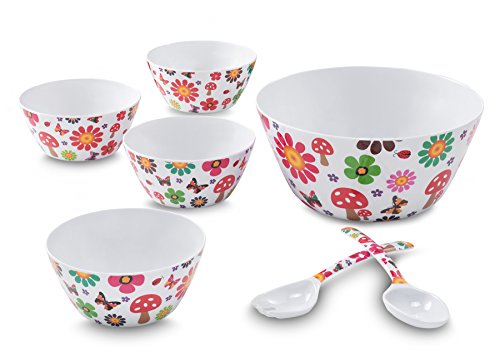 Francois et Mimi 7 Piece Melamine Salad Bowl Set with Utensils (Floral)