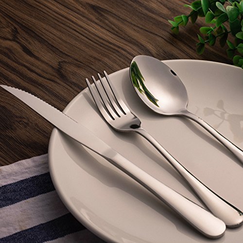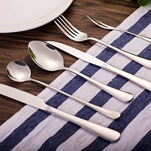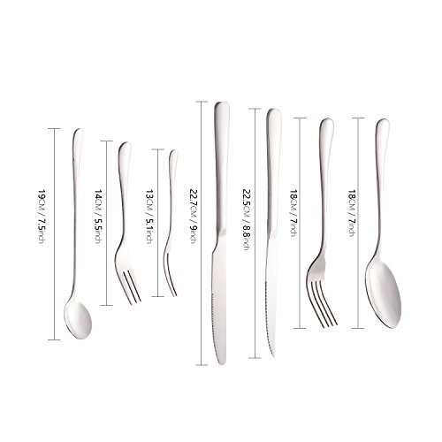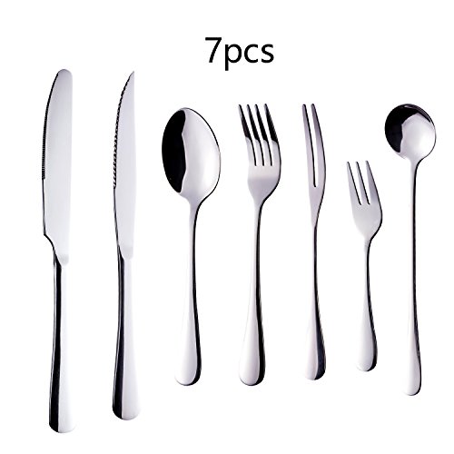 Flatware Sets, HOOHII 7pcs Silverware Cutlery Sets Stainless Steel Tableware Set Mirror Polished, Including Knife Fork Spoon