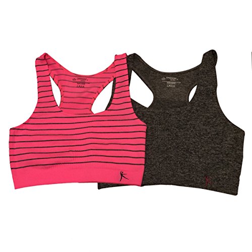 -. Binding : Apparel -. Brand : Danskin -. Department : womens -. Feature : Racerback - U-neck front - Power stretch support / Can be worn under gym/casual clothes or alone / 2-Pack / Medium Impact / Can double as lounge or sleepwear -. IsAdultProduct : 0 -. PackageQuantity : 2 -. ProductGroup : Apparel -. ProductTypeName : BRA -. Title : Danskin Seamless Racerback Sport Bra Value 2-Pack Med-Impact Reg & Plus Sizes