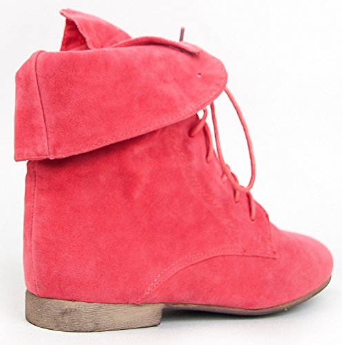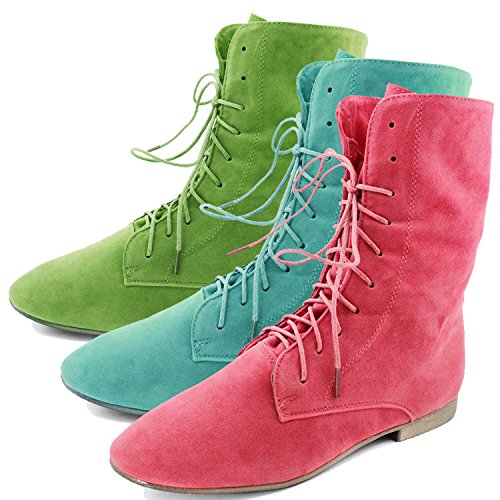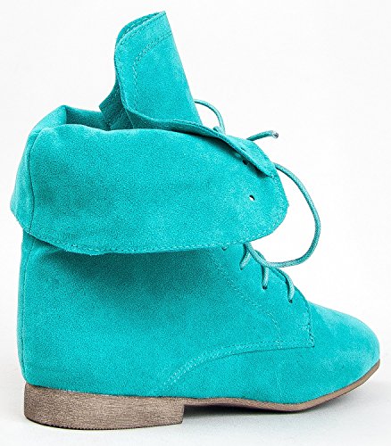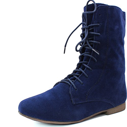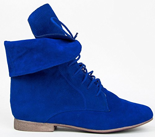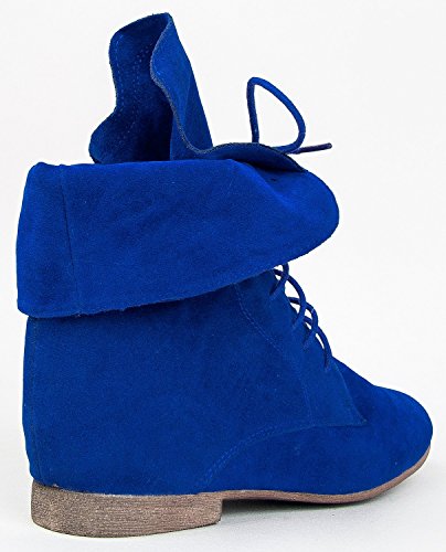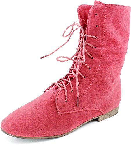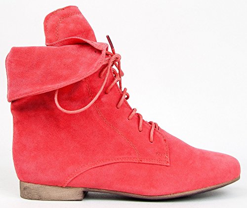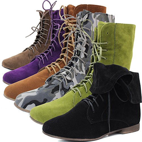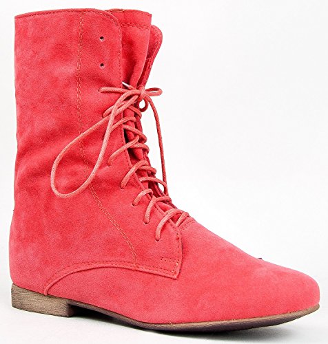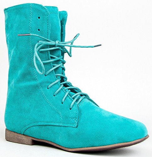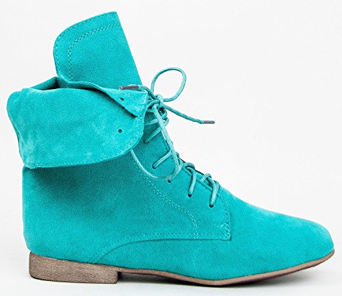 Breckelle's Sandy-62 Basic Casual Cuffed Lace Up Flat Ankle Bootie Boot