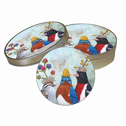 - Tin boxed set of 12 absorbent coasters made of pulpboard