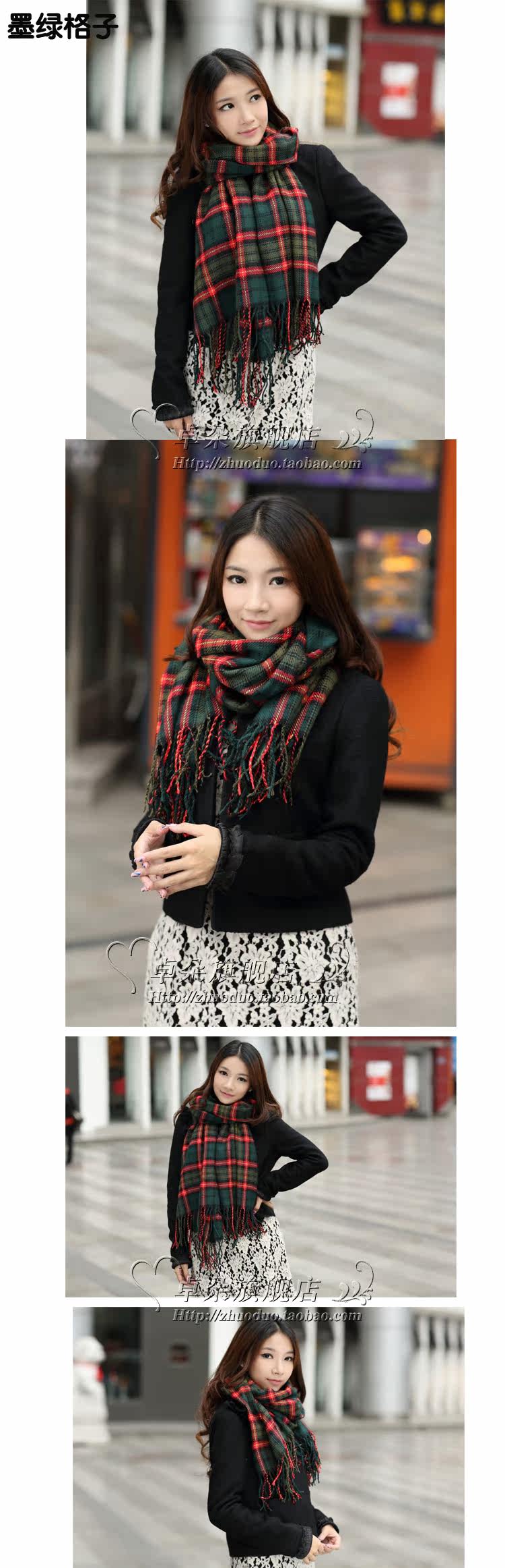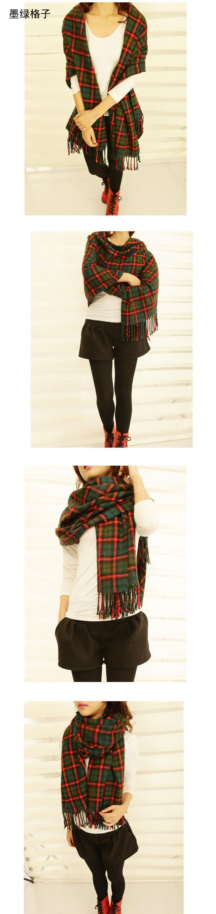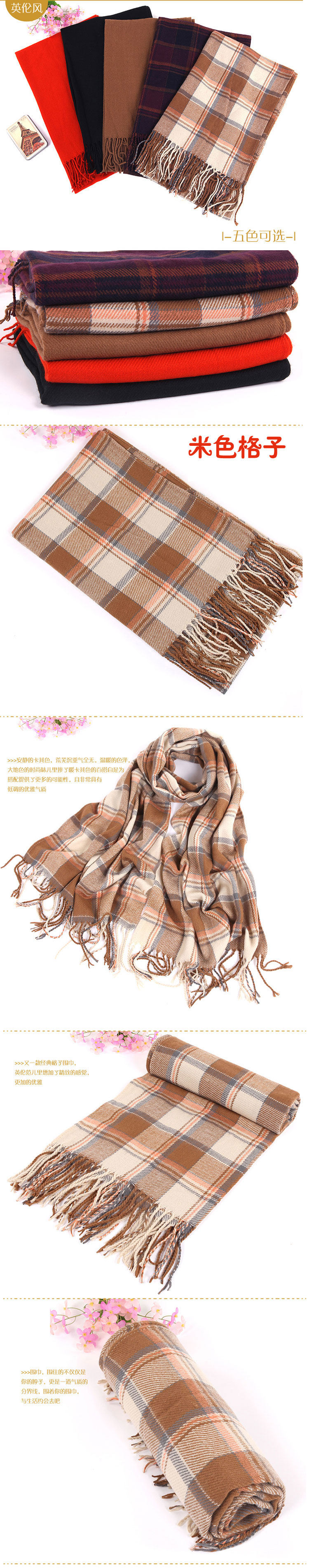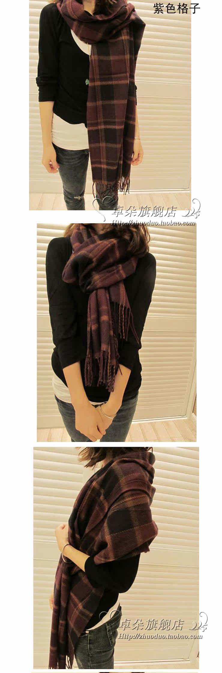 卓朵围巾 女 韩版秋冬天女士仿羊绒毛线围巾 英伦风格子流苏围巾