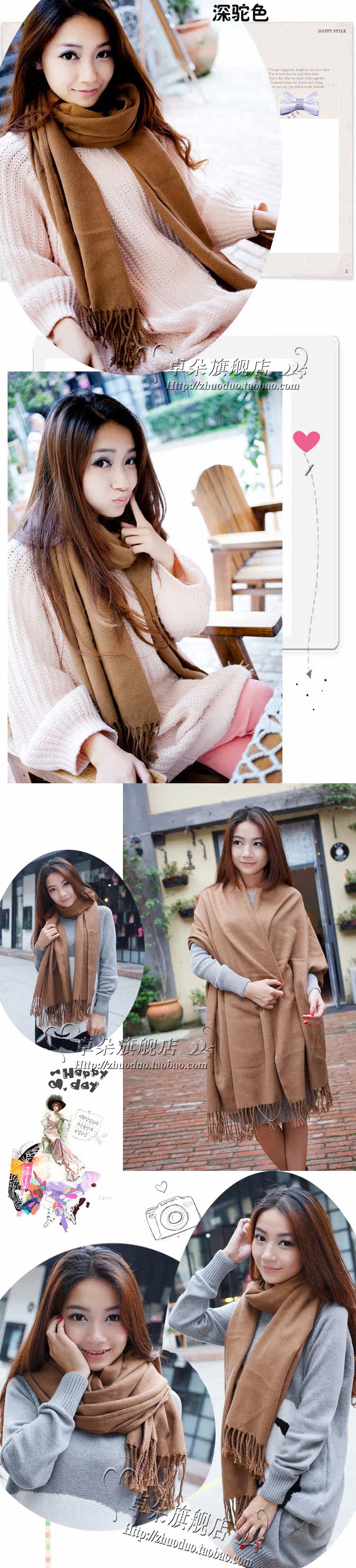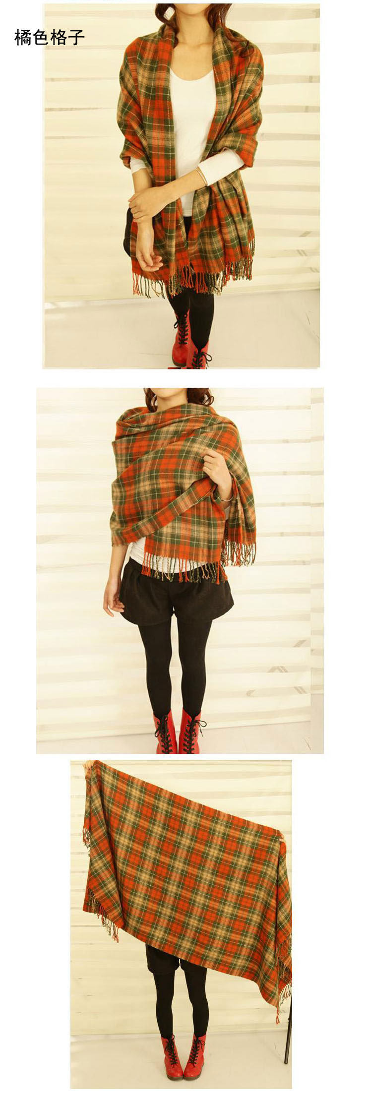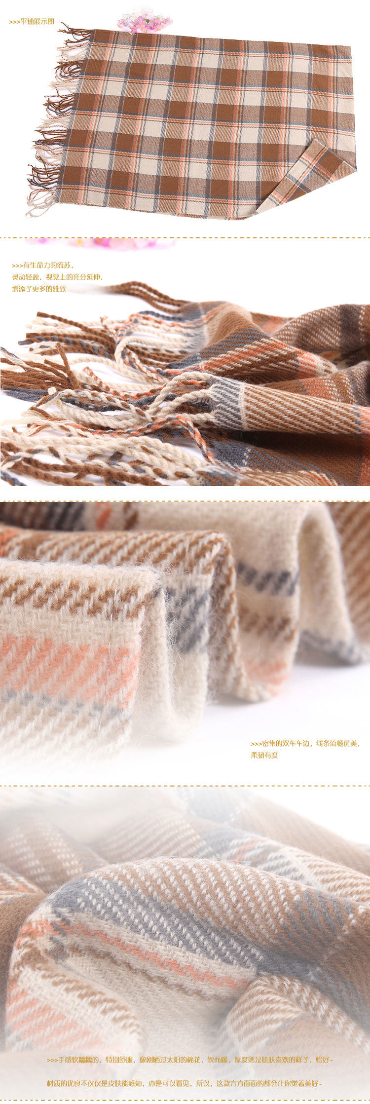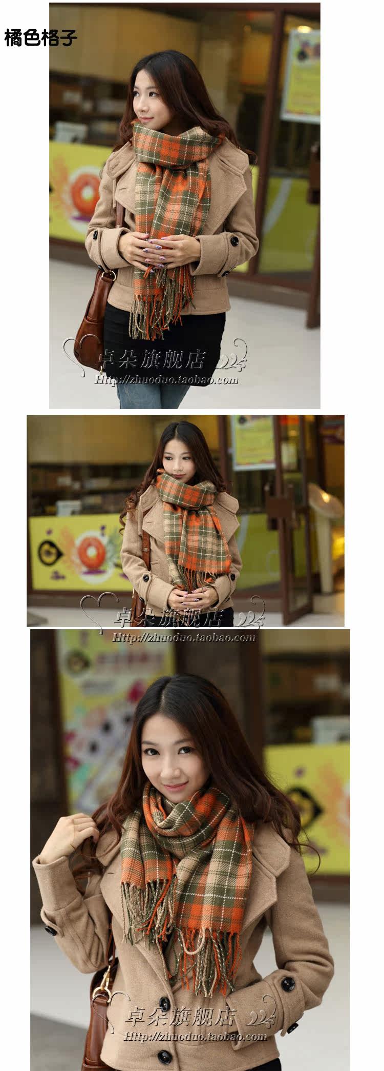 卓朵围巾 女 韩版秋冬天女士仿羊绒毛线围巾 英伦风格子流苏围巾