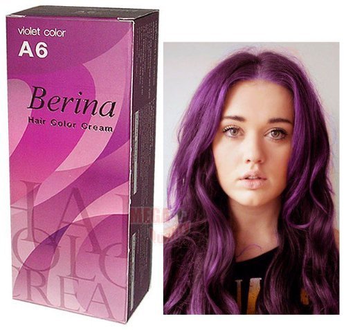 -. Binding : Misc. -. Brand : Berina -. Color : Violet -. EAN : 0781549228390 -. Feature : Berina Hair Color cream containing an innovative component which protects and provides glamours colour to hair as desired. / Berina Hair Colour Cream contains active and powerful radiants which confers the product in a permanent color and silky hair / make your hair more smooth and silky. / Berina hair color cream 60 g. / We have boxes 1 box for you -. IsAdultProduct : 0 -. Label : THAILAND -. Manufacturer : THAILAND -. MPN : B00OO1C22K -. PackageQuantity : 1 -. PartNumber : B00OO1C22K -. ProductGroup : Beauty -. ProductTypeName : BEAUTY -. Publisher : THAILAND -. Studio : THAILAND -. Title : Berina Permanent Hair Dye Color Cream #A6 Violet Hair Color by Berina -. UPC : 781549228390