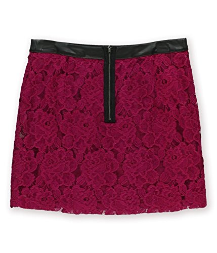 Item Description: Lined lace skirt Faux leather waistband Back zippered closure