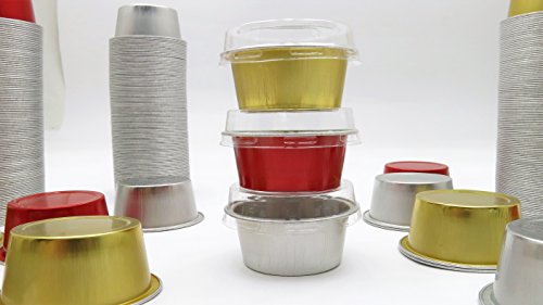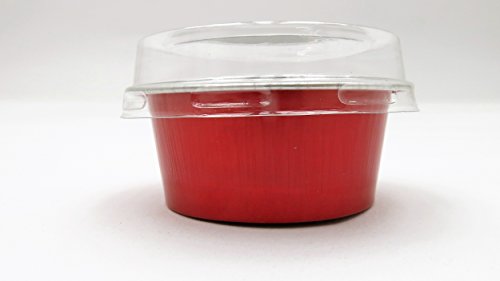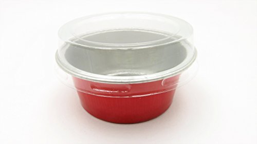 KitchenDance Disposable Aluminum Mini Baking Cups/ Dessert Cups- 1-1/2 oz Capacity- Pack of 100 (With Lids, Red)