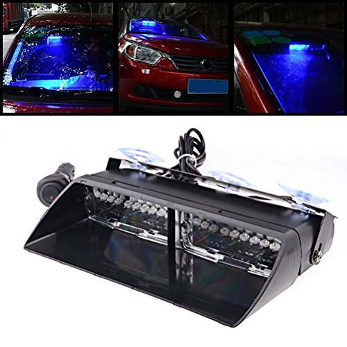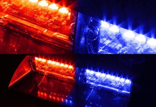 WoneNice 16 LED High Intensity LED Law Enforcement Emergency Hazard Warning Strobe Lights 18 Modes for Interior Roof / Dash / Windshield with Suction Cups (Red/Blue)
