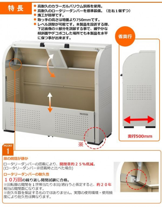 奥行500mmのスリムタイプ。回転扉にはロータリーダンパーを採用!開閉時の操作音が静かです。