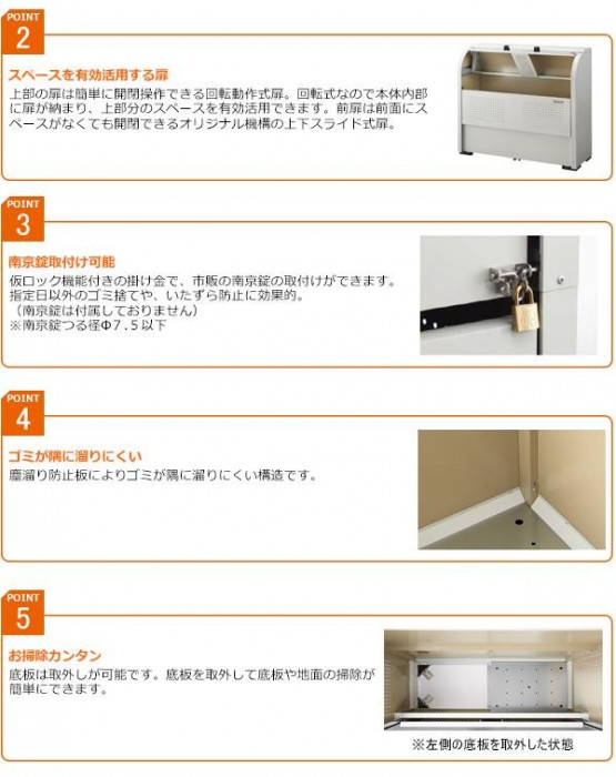 奥行500mmのスリムタイプ。回転扉にはロータリーダンパーを採用!開閉時の操作音が静かです。 製造国:日本 素材・材質:カラーガルバリウム鋼板 仕様:容量/600L本体質量/43kgゴミ袋集積目安/45L用:約13袋世帯数の目安/約6世帯 付属品:取扱説明書、保証書(1年) ※サプライヤー直送品 ご注文後7~8営業日後の出荷となります【商品名】ダイケン ゴミ収集庫 クリーンストッカー スチールタイプ CKE-R1350