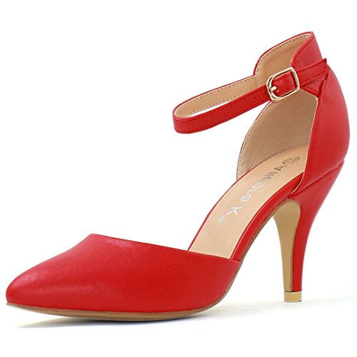 -. Feature : FITTING TIPS: If you have a thicker foot or a steep instep, we recommend sizing up half size / Pointed Toe, Adjustable Buckle Ankle Stap / Stiletto Mid Heel, Padded Insole, Pumps / Heel Height: 3 3/8 inches