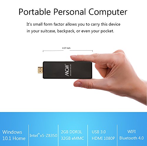 Portable - The AWOW mini PC stick is smaller than your hand and it fits where most other computers don't. It is perfect for kiosks, smart conference rooms, and office hoteling