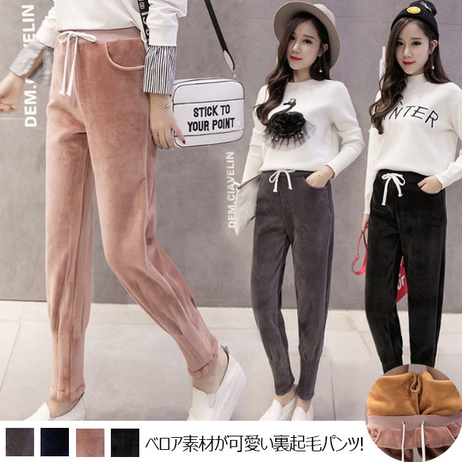ベロア素材が可愛い裏起毛パンツ♪