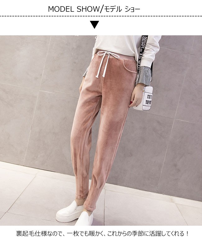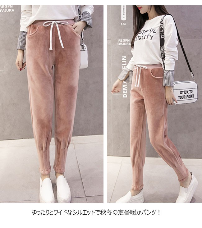 | 商品名 | あったかスエットパンツ ベロアパンツ 暖か 裏起毛 サルエルパンツ無地 秋 レディース スウェットパンツ 裏起毛 裏ボア ジョガーパンツ ロングパンツ テーパードパンツ 2017秋冬新作 |