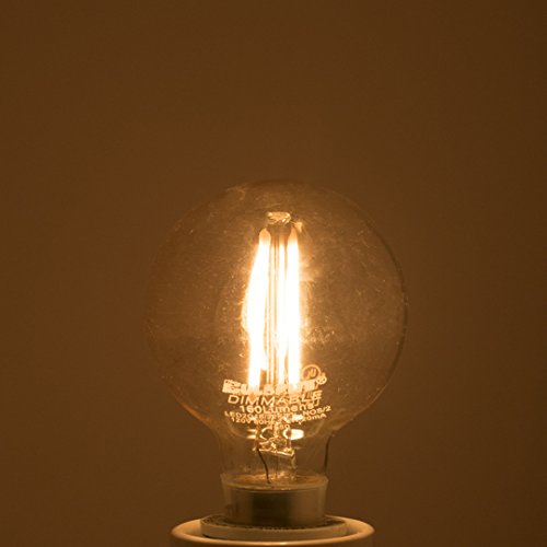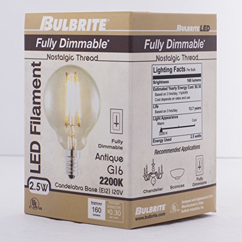 Bulbrite 776506 25W Equivalent LED2G16/22K/FIL-NOS 2W LED Nostalgic Globe Bulb with Candelabra Base, Antique Finish, Vintage Light Bulb