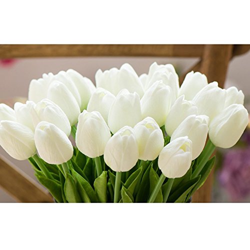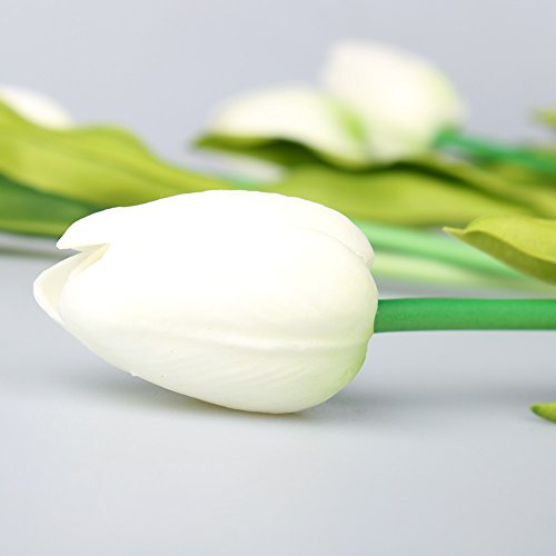 StillCool Artificial Flowers Tulip 12pc/set Pu Stunning Holland Mini Tulip Real Touch Wedding Flower Artificial Flowers Latex Plants for Party Home Hotel Event Christmas Gift Decoration (White)