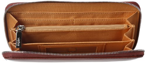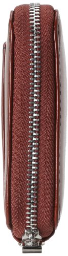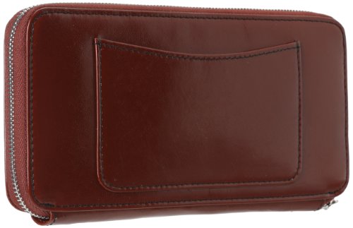 - Feature : A luxurious everyday essential / Leather material with shiny nickel hardware accents / Zip-around closure / Fabric lining / Interior includes center zip divider, eight credit card slots and a bill pocket