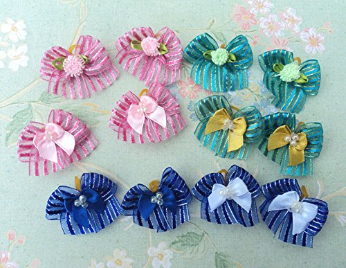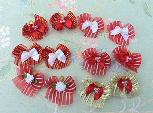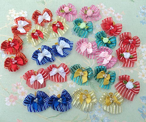 -. Feature : Aproximately 1.5 inches size which are suitable for small to medium size dogs, such as maltese, yorkie, poodle, shih tzu, etc. / A total of 30 dog bows per pack / Great dog bows for Christmas Holiday / This pack has multi-layered bows with the base layer is a strip organza bow and the center decorated with mum, flower, etc.