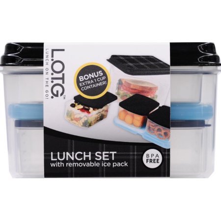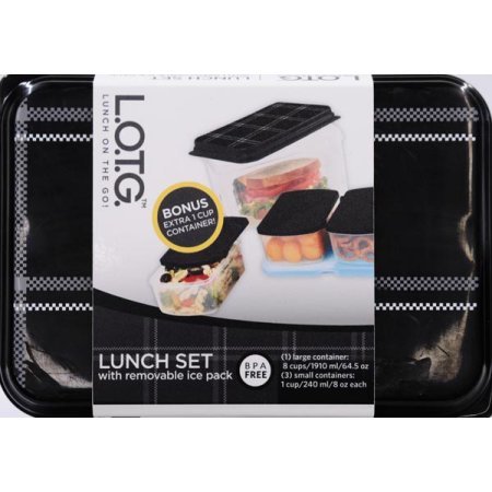The Go Lunch Container Set with Removable Ice Pack,Black Plaid