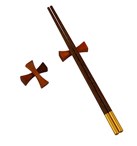RYPMIC 4 Pieces Hand crafted Leaf Shape Wooden Chopsticks Spoon Forks Rest Holder KD07 (2)