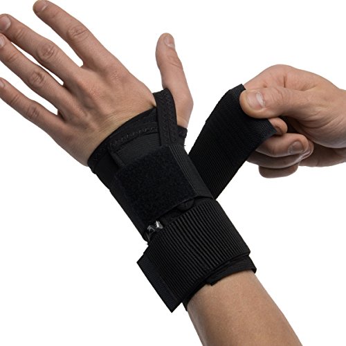 -. Feature : Supportive wrap for sore strained or injured wrist; For chronic acute wrist injury protection recovery / Promotes healing in neutral mobile wrist positions; Ergonomic for tendonitis, carpal tunnel, bowling / Free-thumb hole & finger movement for mobility; Adjustable tension strap can adjust while working / Comfortable, soft, easy slip on, adjust w/1 hand; Padded fabric, hook & loop closures, elastic band / To find size measure around smallest part of wrist; Small: 5.5"-6.5"; Medium: 6.75"-7.5"; Large: 7.75"-8.5"; XL: 8.75"-9.5"