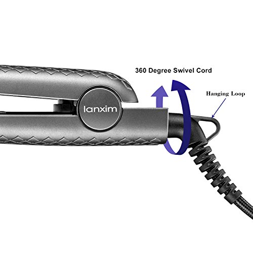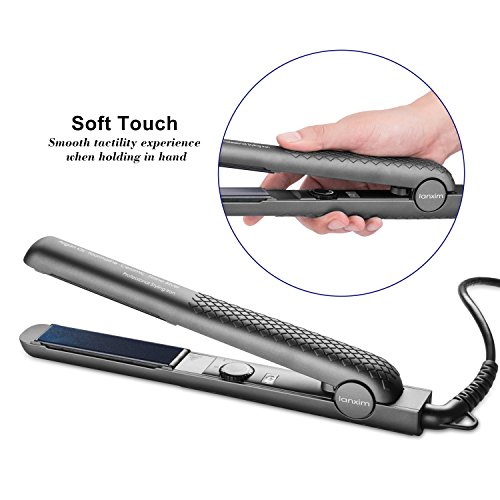 Title : Lanxim Ceramic Tourmaline Flat Iron Hair Straightener with Travel Bag, 1 Inch Floating Plates, Gray