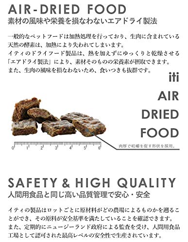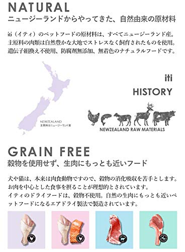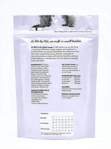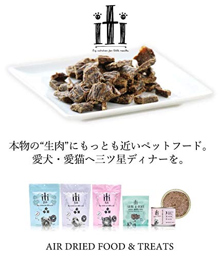 原材料:ミート(チキン、チキン肝臓)、野菜(エンドウ、乾燥チコリ、パセリ)、緑イ貝、亜麻仁、ケルプ、ミックストコフェロール(ローズマリー由来)、 ビタミン・ミネラル類(ビタミンA、ビタミンD3、コリン、亜鉛、鉄、ビタミンE、パントテン酸、ニコチン酸、マンガン、銅、ビタミンB2、ビタミンB1、ヨウ素、ビタミンB6、コバルト、ビタミンK、セレン、葉酸、ビオチン、ビタミンB12)