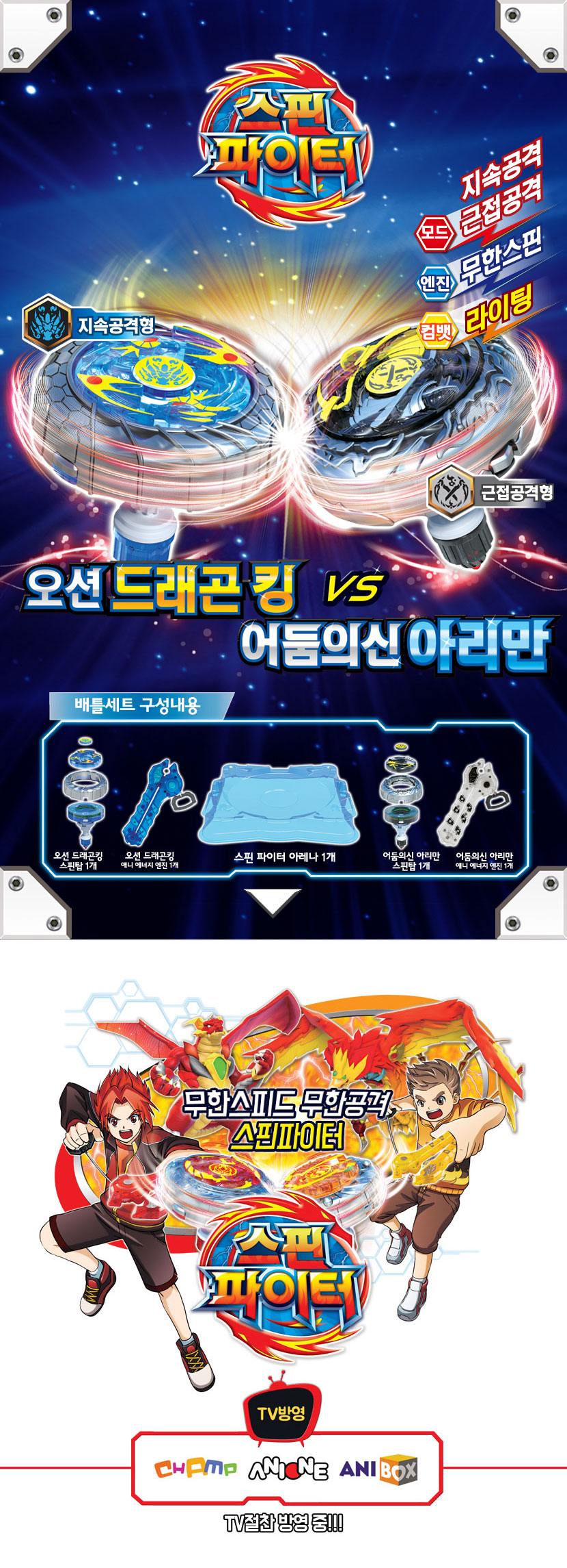 Includes: Ocean Dragon King Spin Top 1, Ocean Dragon King Annie Energy Engine 1, Spin Fighter Arena 1, God of Darkness Ariman Spin Top 1, God of Darkness Ariman Energy Engine 1