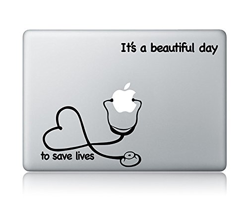 Stethoscope Heart And It's A Beautiful Day To Save Lives Grey's Anatomy Laptop Apple Macbook Vinyl Decal Sticker Apple Mac Air Pro Laptop Sticker