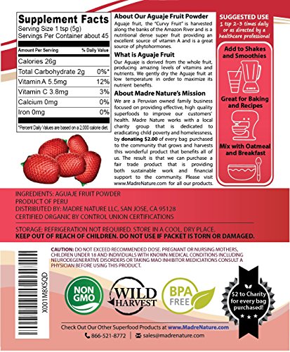 -. Title : Madre Nature - Aguaje Fruit Powder - non-GMO - Wild Harvested in Peru - 8oz Value Pack Pouch