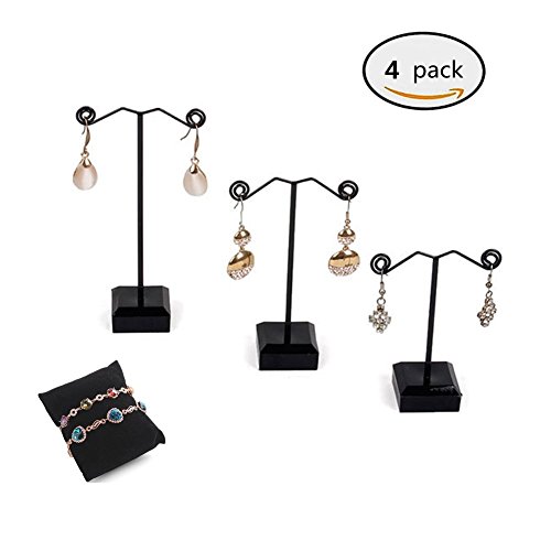 Yunko 4 Pc Set Jewelry Organizer Display Hanger for Earrings Bracelets Watches Black
