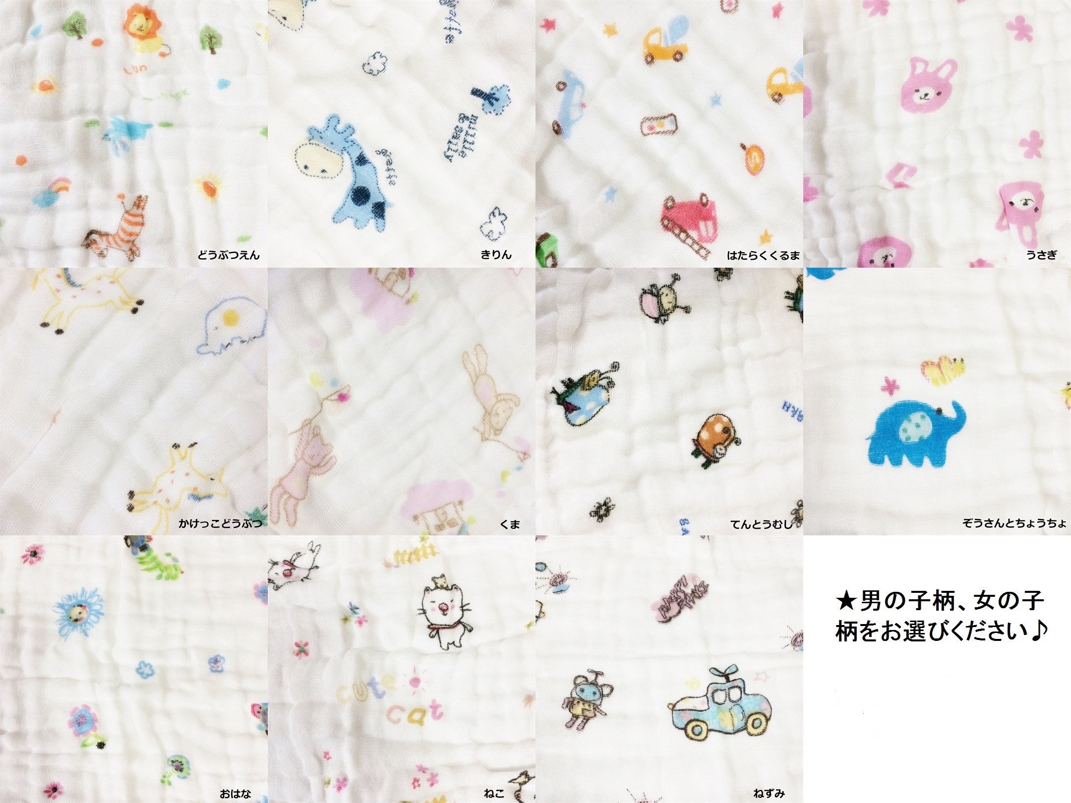 · Color can be chosen with boy's pattern or girl's pattern.