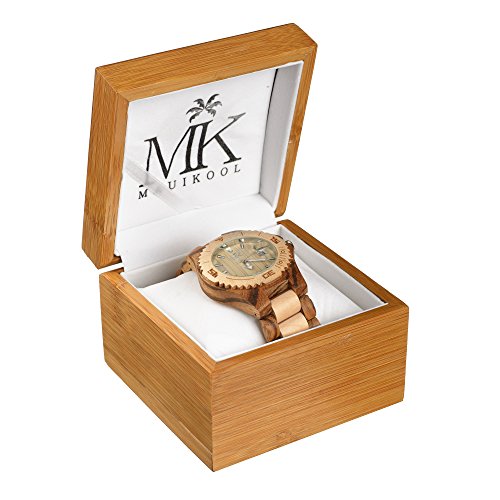 -. Feature : ✅ BAMBOO BOX INCLUDED - AN IDEAL GIFT FOR ANY OCCASION - Christmas, birthday, anniversary, Father's Day, graduation or Valentine's Day, Maui Kool wooden wrist watches are the ideal gift choice for your loved ones. This Maui Kool wood watch is guaranteed to be a talking point wherever you go. Our watches are presented in an elegant bamboo box as pictured in this listing. WE ALWAYS SHIP FROM THE USA. Please be aware of knockoffs and one-month shipping delays from Chinese imitators. / ✅ 100% SATISFACTION GUARANTEE! - Our absolute 100% no-questions-asked, you'll-totally-love-it-or-you-get-all-your-money-back guarantee. We think you will LOVE your Maui Kool watch; however, we want you to be happy with your purchase! If there is a problem with your product we would love the chance to make it right. If you have simply changed your mind please return it for a full refund. It's that simple. / ✅ SIZE EASILY ADJUSTABLE - You can adjust or re-size your watch by removing extra links. We recommend having your watch re-sized by a jeweler or watchmaker. Extra links are available upon request at no additional charge. / ✅ ECO-FRIENDLY AND HYPO-ALLERGENIC - Maui Kool wood watches are handcrafted with 100% natural wood without paint or chemicals, making them hypo-allergenic and suitable for people with sensitive skin. We use the off-cuts from furniture to manufacture our watches. / ✅ PERFECT FOR MEN AND WOMEN - Our Lahaina watches were designed as unisex watches. The large face fits great on a man's wrist, but women who love large faced watches will love them too. See our photos on this listing!