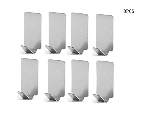 8 Pieces,3M Self Adhesive Hooks, SUS 304 Stainless Steel Towel Hooks, Super Power Heavy Duty Wall Mount Coat Hook Rack, No Drill No Screw, Waterproof, for Kitchen Bathroom Toilet