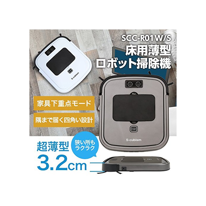 원본상품명: エスキュビズム超薄型床用 ロボット掃除機 メタリックシルバ 薄さ3.2センチ SCC-R01S